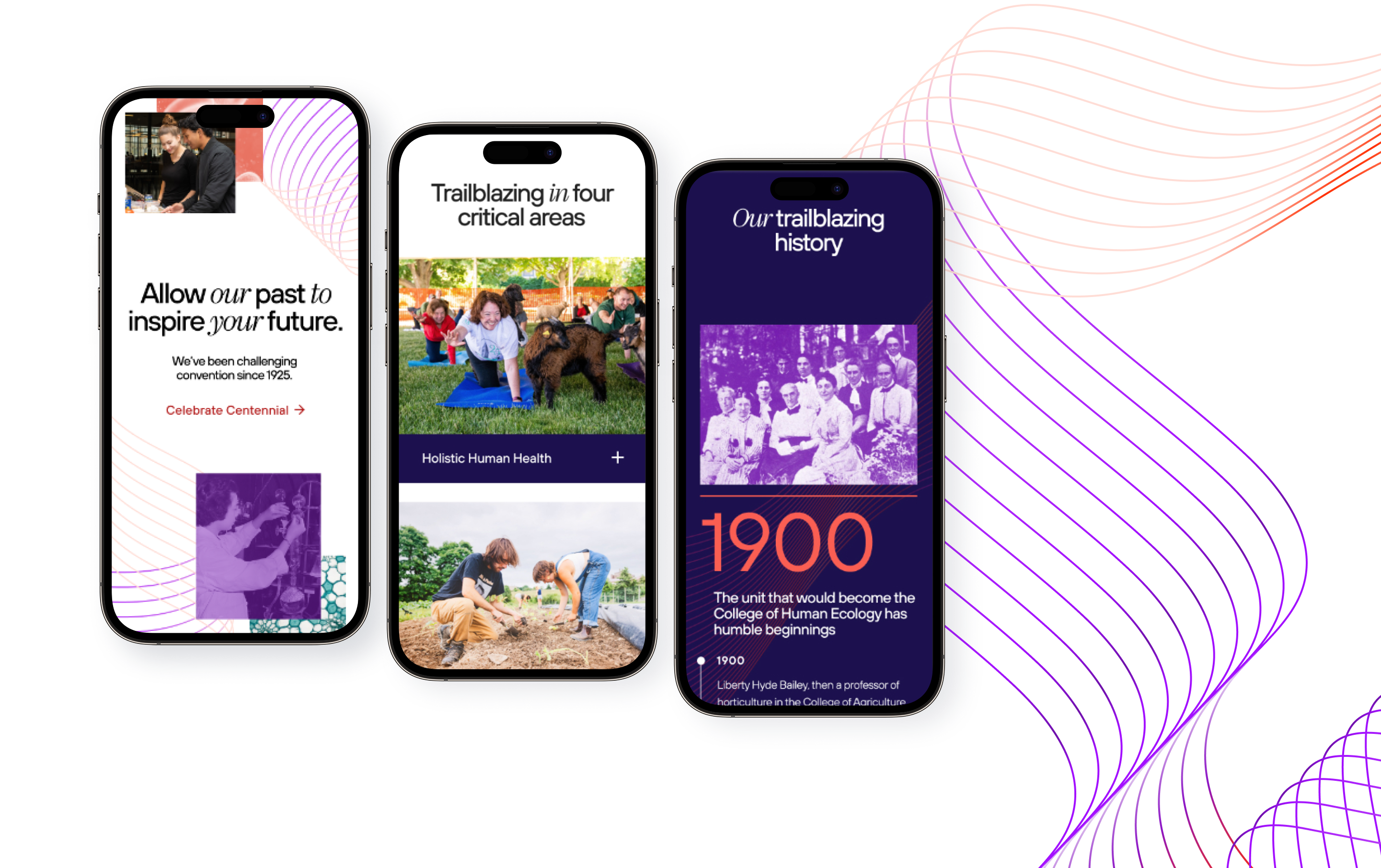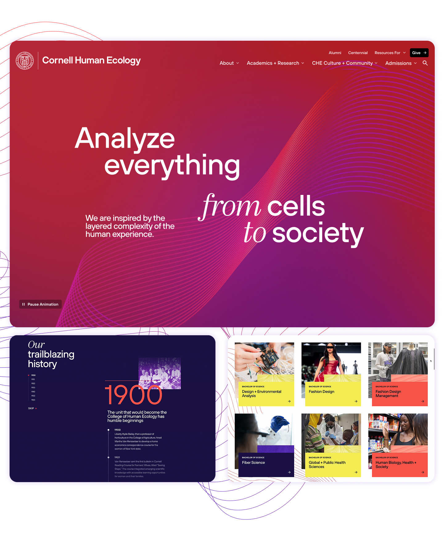 For Cornell, the College of Human Ecology now has a distinctive digital identity–one that unifies people, science, and design, and that boldly communicates its mission to improve lives. More than a website, it is a platform for inspiration, connection, and progress.